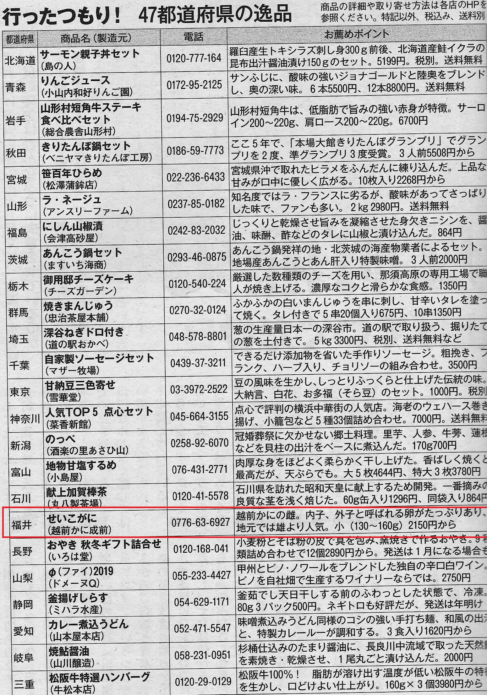 越前かに成前ブログ 週刊朝日年始号の「コロナ禍で行ったつもり 47都道府県の逸品」で取り上げていただきました 週刊朝日年始号の「コロナ禍で行ったつもり 47都道府県の逸品」に、福井県は越前かに成前のせいこがにが取り上げていただきました。 お知らせ 2021/01/16 narizen ≪ 食彩の王国 第862回「越前がに」の回に取り上げていただきました | 1/31放送予定 「所さんのお届け物です!」にて越前かに甲羅盛を取り上げていただきました ≫ /blog/blog_comments/captcha/14363921 /blog/blog_comments/get_token
